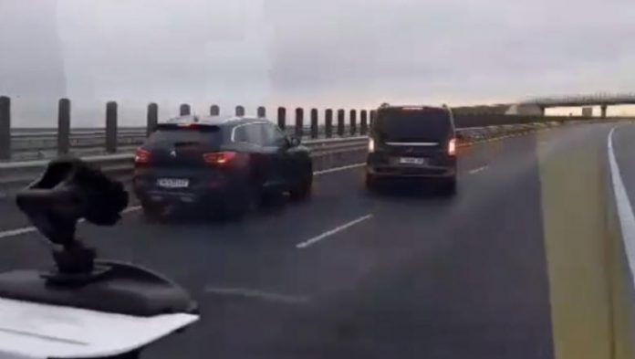 Practic, unul dintre șoferi nu îi permite celuilalt să îl depășească și îi taie calea ori de câte ori acesta încearcă o depășire. Impactul între cele două mașini este evitat în ultimul moment. Cei doi şoferi au fost filmați pe Autostrada Timișoara – Arad.