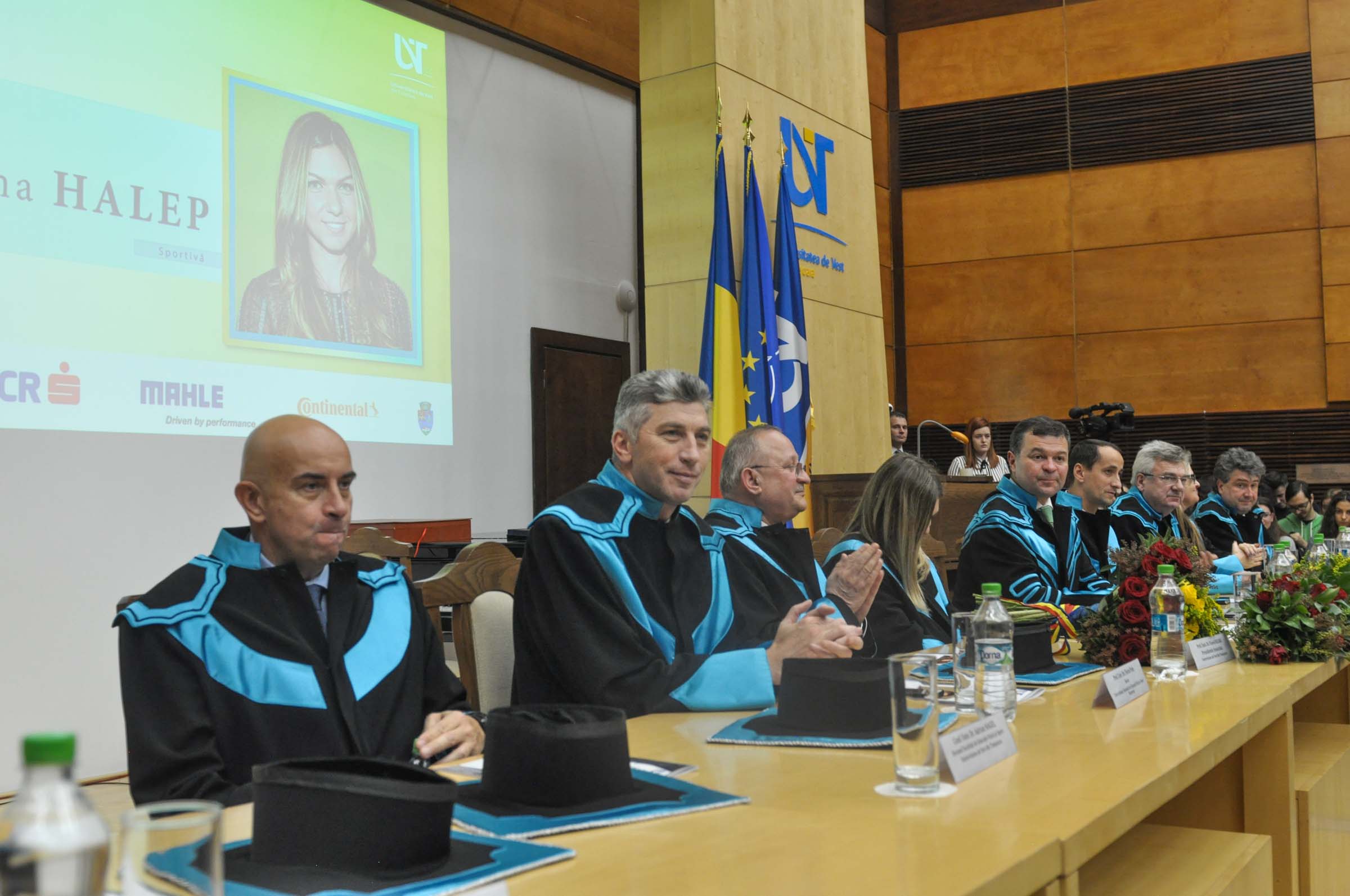 Universitatea de Vest din Timișoara prețuiește excelența, ca rezultat gradual și permanent al efortului de a fi mai bun. În demersul său de recunoaștere a valorilor României, UVT a acordat titlul de Doctor Honoris Causa, sportivei numărul 1 mondial în tenis, o adevărată personalitate și un ambasador de prim rang al României în lume: Simona Halep.