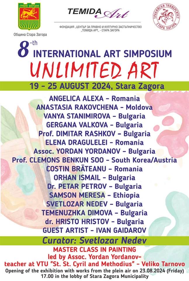 Ĩn perioada 19-25 august localitatea Stara Zagora din Bulgaria a găzduit un important eveniment artistic, a VIII-a ediție a Simpozionului Internațional de Artă ,,UNLIMITIED ART’’ ce a reunit anul acesta cincisprezece artişti vizuali din Bulgaria, România, Corea de Sud şi Republica Moldova.