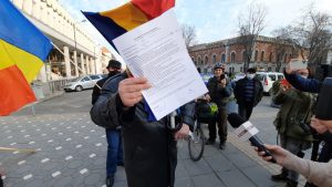 O mână de oameni s-a strâns ăn Piața Victoriei pentru a-și manifesta nemulțumirea față de instaurarea carantinei.