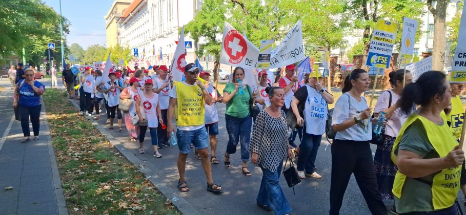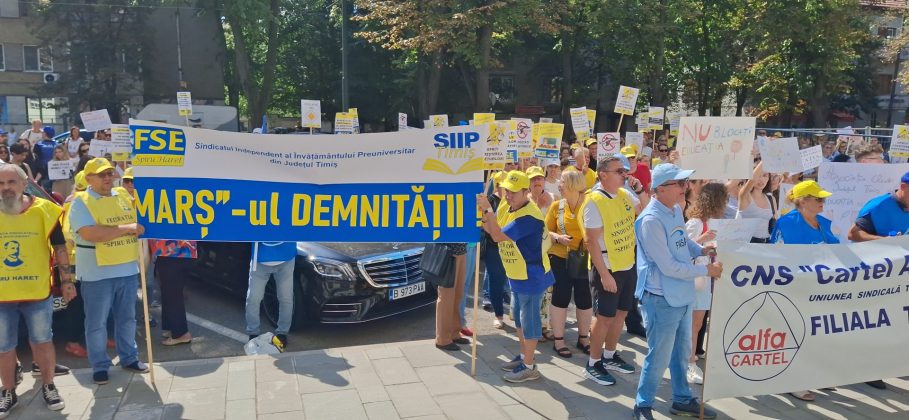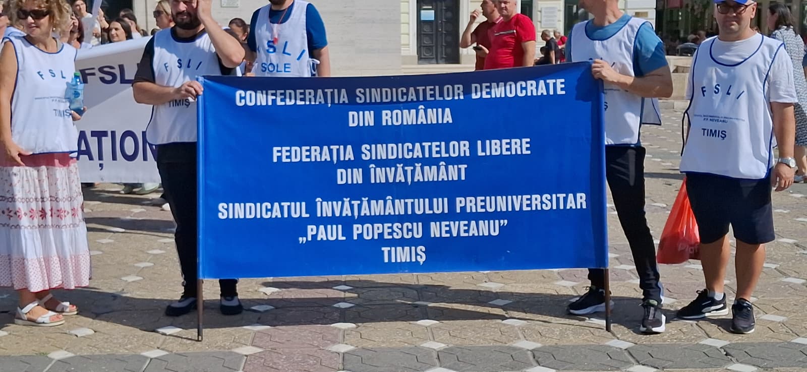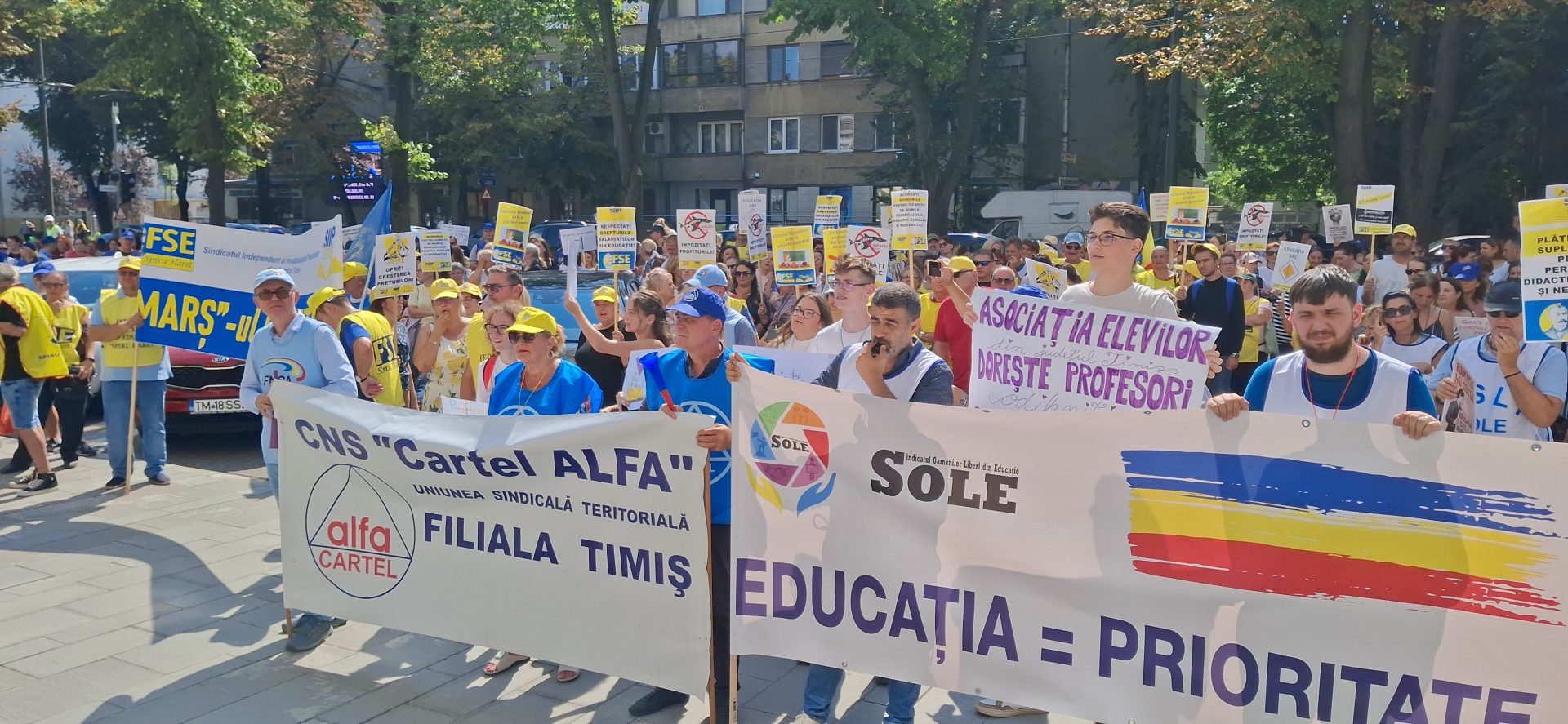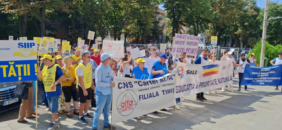 Așa după cum au promis, sindicaliștii ce reprezintă dascălii timișeni, au ieșit vineri, 5 septembrie, în stradă pentru a protesta împotriva măsurilor fără noimă luate de guvernanți.