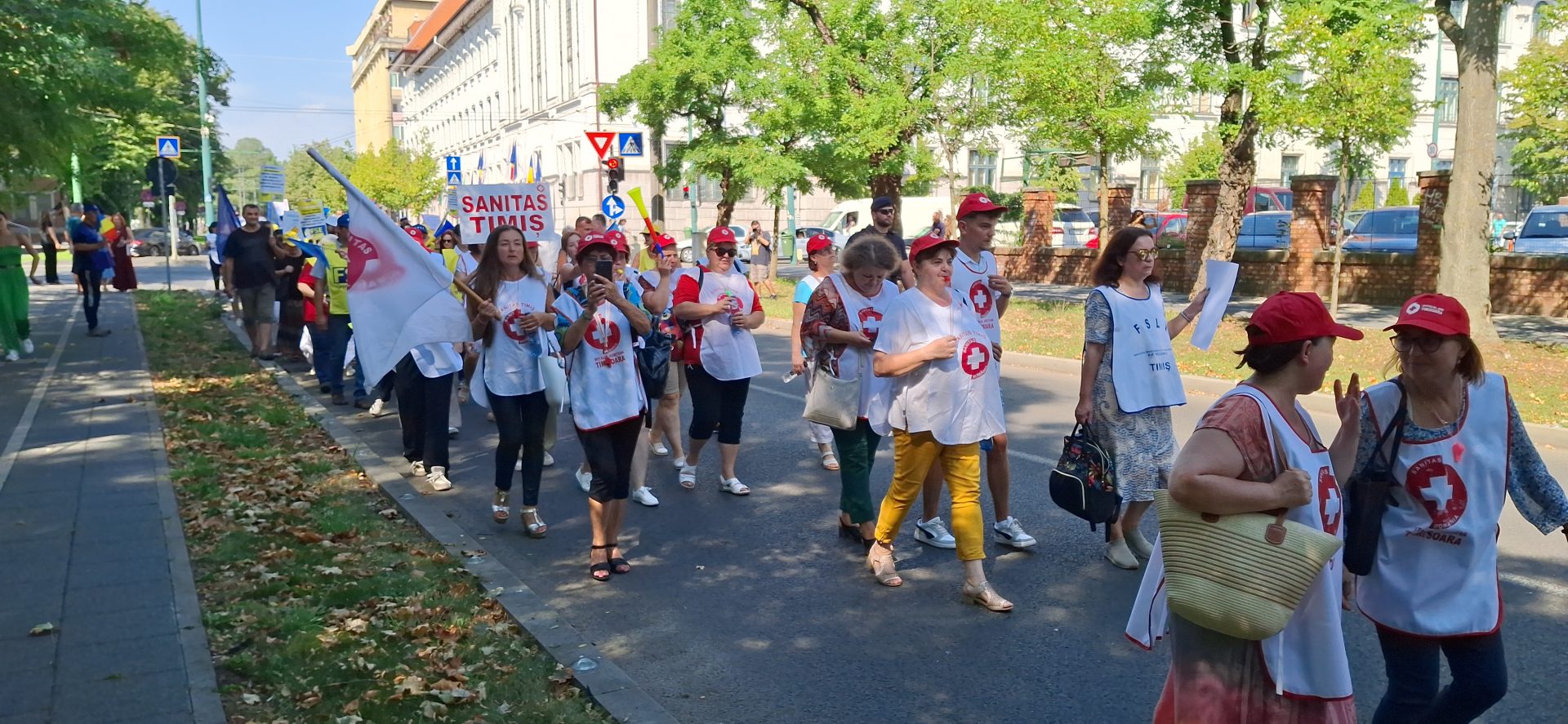 Marșul din 5 septembrie a pornit la ora 11, 30 din Piața Victoriei (Operei) și va urma un traseu ce trece pe la Catedrala Mitropolitană – Bulevardul Constantin Diaconovici Loga – Bulevardul Revoluției din 1989 și va ajunge la Prefectură.