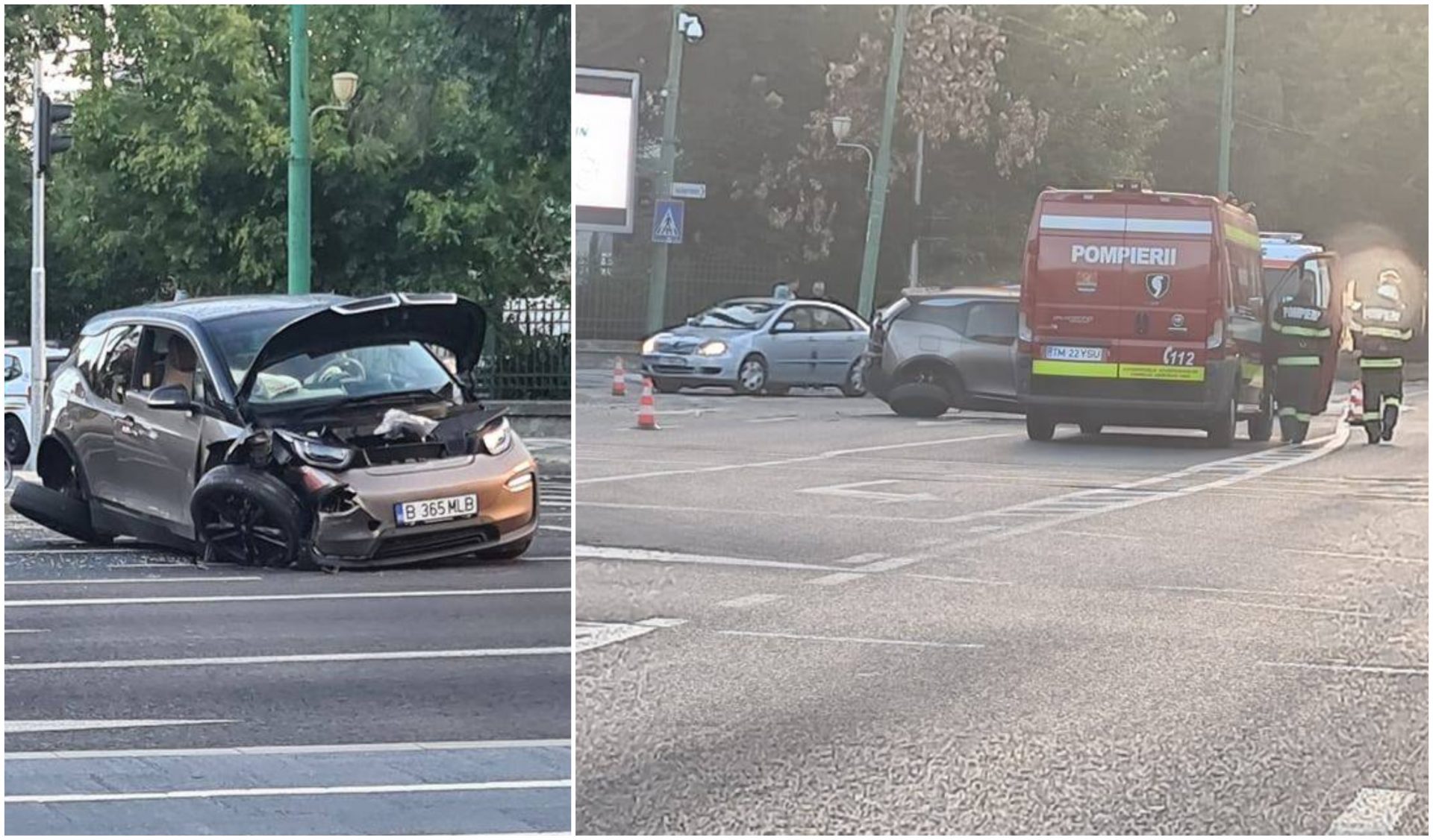 Un șofer a ajuns la spital după ce a provocat un accident rutier în centrul Timișoarei. Acesta a trecut pe culoarea roșie a semaforului, într-o intersecție, și s-a izbit de o altă mașină.
