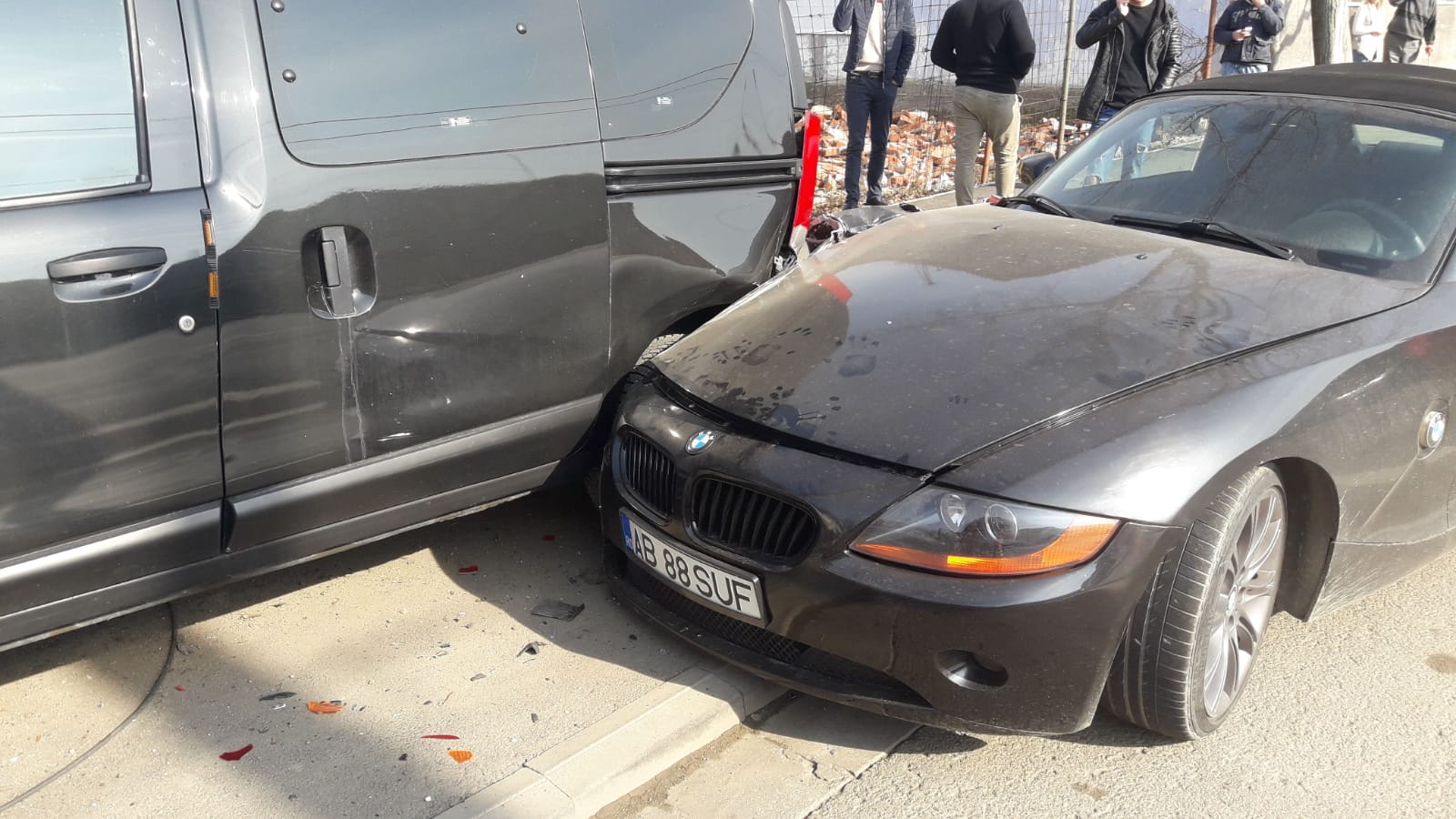 Șoferul vinovat se afla la volanul unui BMW li circula cu viteză, astfel că nu a mai putut evita impactul cu o Dacie staționată pe trotuar.