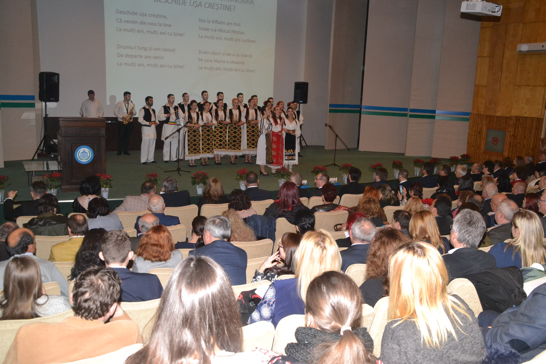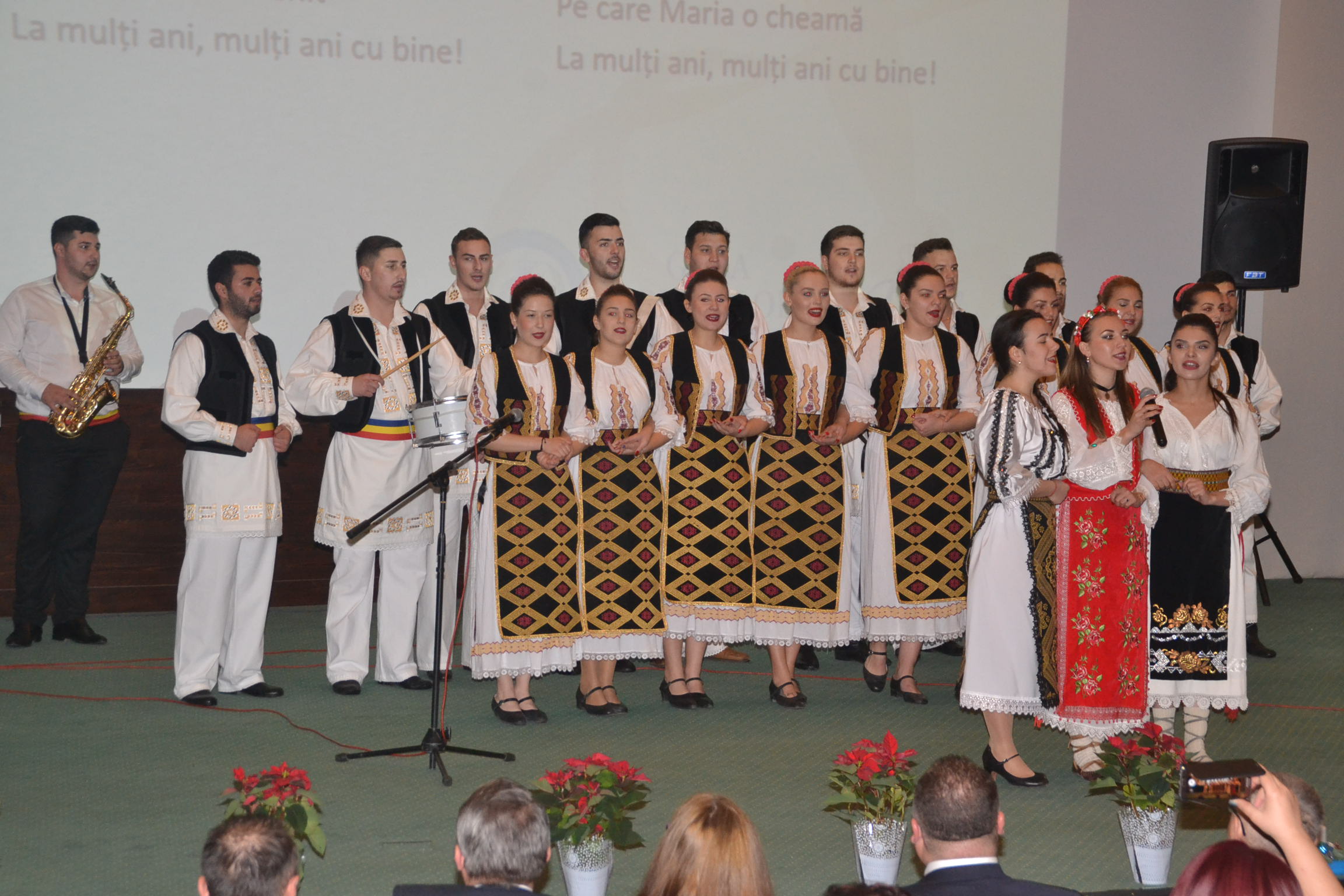 Momentele foarte sobre au fost încălzite de colindele frumos horite de nou înființatul Ansamblu Artistic „Agronomia” ce a debutat acum pe o scenă adevărată. Sunt tineri studenți ce pe lângă studiu doresc să ducă mai departe și tradițiile culturale și folclorice auzite de fiecare în zona lui de proveniență. Artiștii în devenire ar fi vrut să cânte mai multe dar rigorile impuse de doliul pentru regele adormit întru Domnul au scurtat programul. S-au limitat doar la cântările de Crăciun.