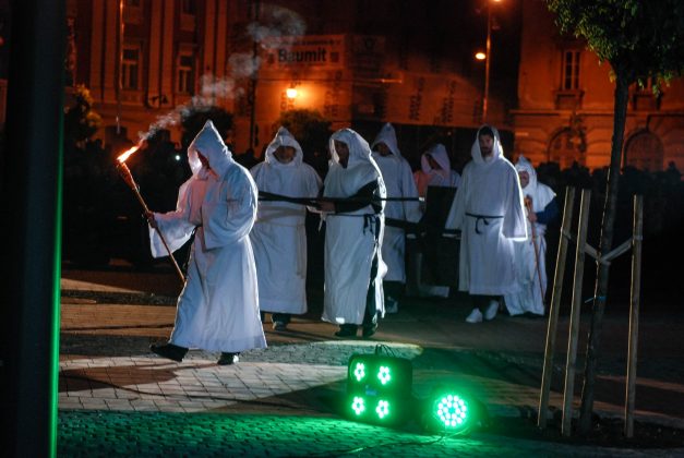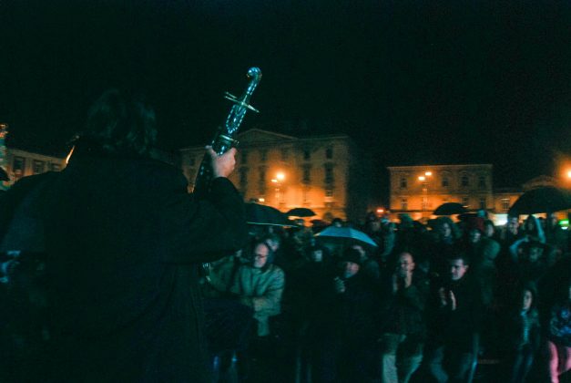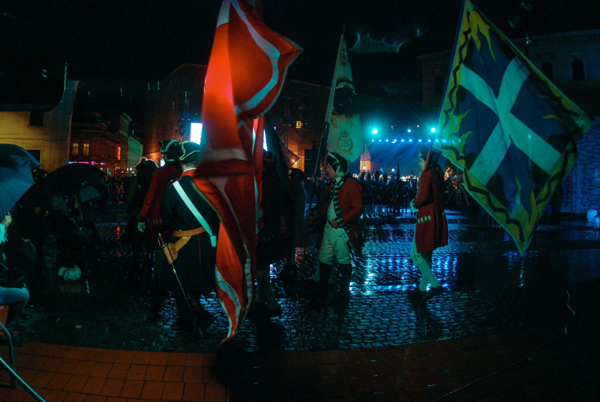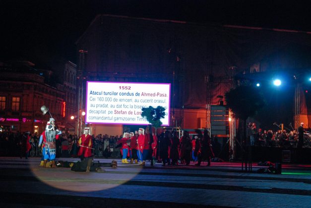 Piața Libertății a fost sâmbătă seara scena unei lecții de istorie care s-a desfășurat în fața sutelor de spectatori ce au înfruntat ploaia.