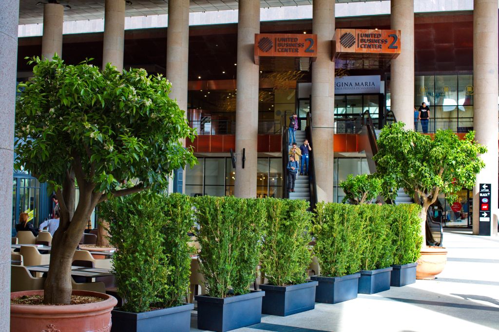 Parfumaţii portocali pot fi admiraţi în zona Curţii de Onoare şi pe terasele restaurantelor. În plus, zeci de ghivece cu arbori de tisă, bonsai, buxus, azalee, hortensii şi alte specii de arbuşti înfrumuseţează intrările principale în Iulius Mall Timişoara.