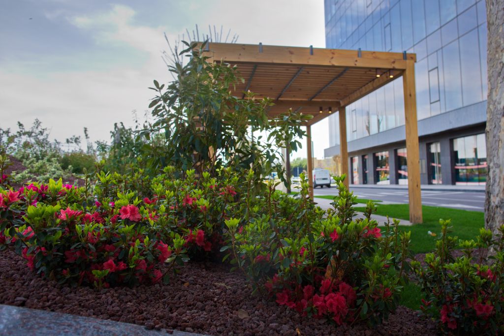 Tot în această primăvară, peisagiştii ansamblului Openville au amenajat şi arealul din imediata vecinătate a clădirii de birouri United Business Center 2, unde au amplasat trei pergole, ideale pentru momente de recreere. Peste 1.100 mp de gazon special şi numeroase plante şi flori aduc un plus de farmec întregii zone. Acestea se adaugă celor 11 platani impozanţi, plantaţi în toamna anului trecut, unii cu vârsta de 120 de ani.