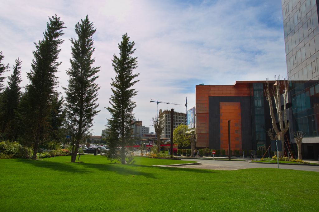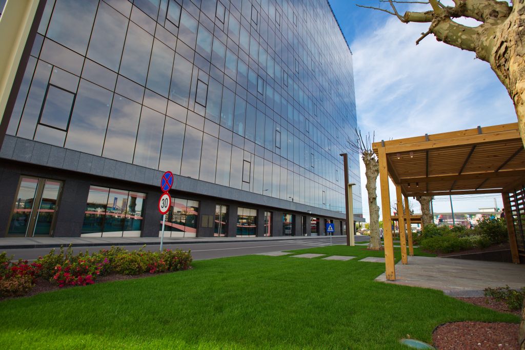 Alei de promenadă, carusel pentru copii, lac, fântâni arteziene, 20.000 de arbuști, 1.000 de arbori, suprafețe întinse acoperite cu gazon special pe care vizitatorii se vor așeza liniștiți sunt doar câteva dintre componentele spaţiului verde din ansamblu.