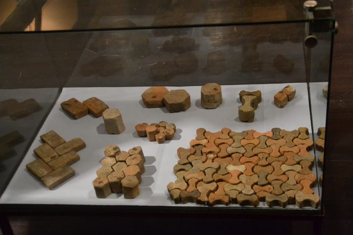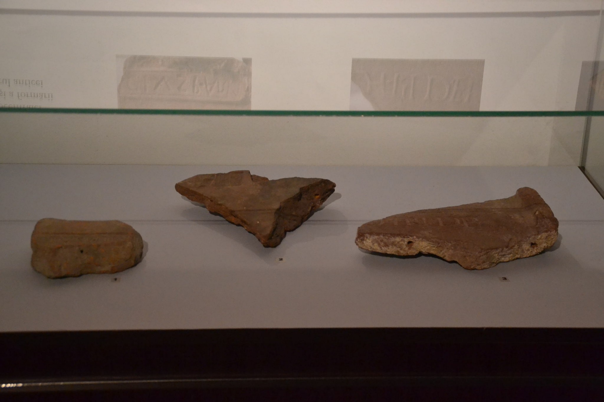 La o primă vedere, par a fi piese foarte frumos lucrate din piatră. Chiar fac parte din lapidariumul muzeului. Dar de fapt sunt din materiale ceramice meșterite de mână de om, din lut, și arse. Sunt țigle si alte plăci sau cărămizi marcate cu ștampile specifice fiecărui atelier la cele de întrebuințări civile sau cu însemnul legiunii sau cohortei în cazul celor de utilizare militară.