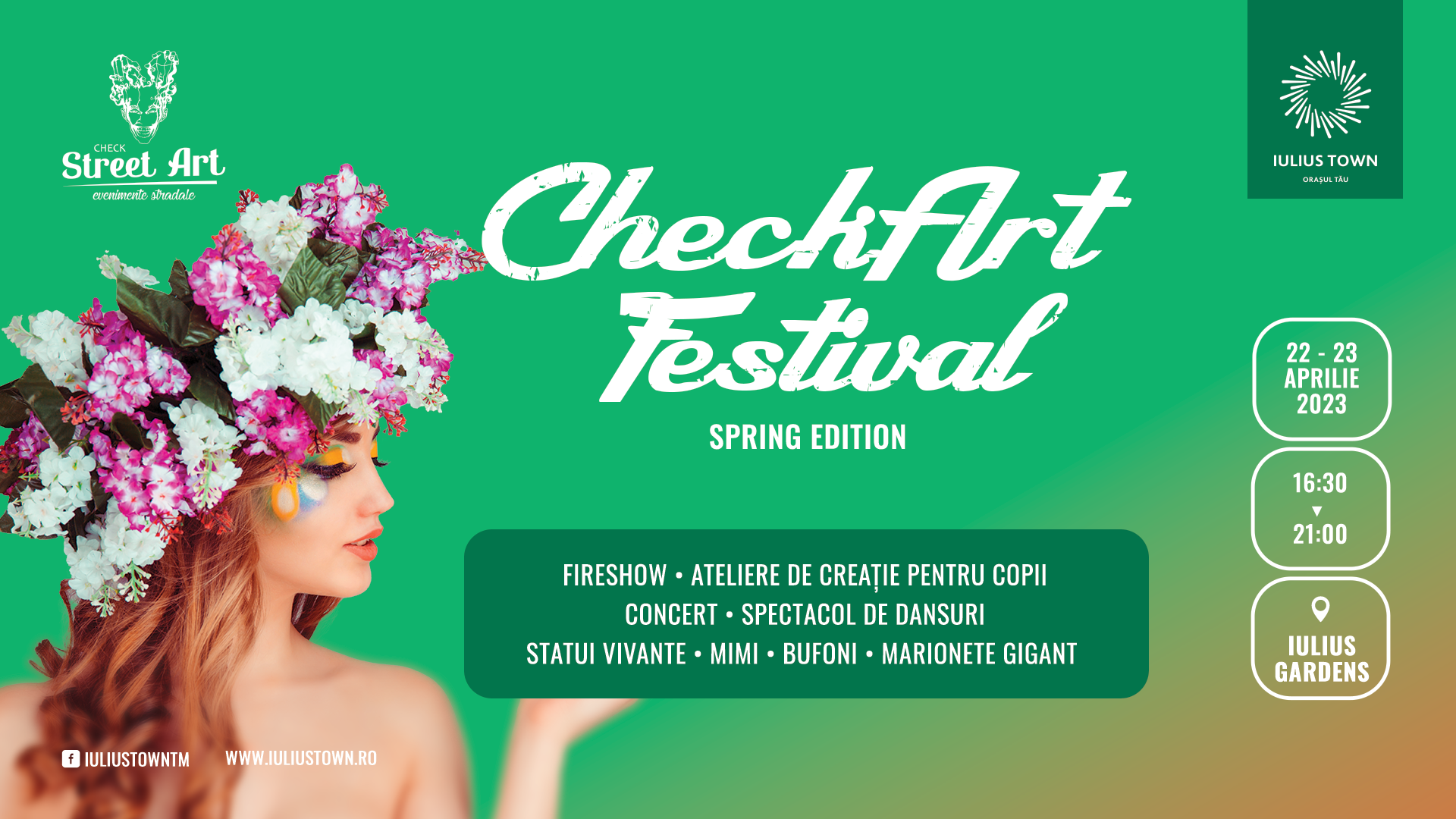 În perioada 22 – 23 aprilie 2023, în intervalul orar 16.30 – 21.00, aleile din parcul din Iulius Town vor fi învăluite de atmosfera festivalului Check Art. Artiștii sârbi din trupa Foolosophy vor face un adevărat spectacol la înălțime, executând numere pe picioroange. Teatru pe Roți Arad o aduce pe Zâna apelor, o marionetă gigant de 3 metri înălțime, dar și pe gorila King, cea mai mare marionetă din țară, care are 4,5 metri înălțime. Mimii, bufonii, performerul Papito din Ungaria, statuile vivante, dar și echipa Aerial Arts and Sports Cluj vor fi prezenți în Iulius Town în cele două zile, la finalul cărora cei prezenți se vor bucura de un spectacol acrobatic “incendiar”. Cei mici au parte, tot în cadrul Check Art Festival, și de ateliere creative, care vor avea loc între orele 16.30 – 20.00, atât sâmbătă, cât și duminică.