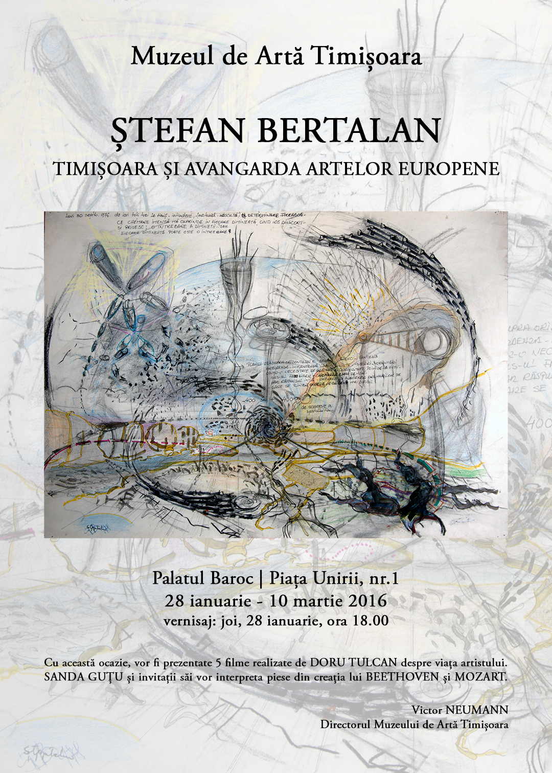Muzeul de Artă Timișoara expune în premieră toate piesele marelui artist Ștefan Bertalan aflate în propriile sale colecții, creații datând din perioada 1965-1991: planșe, desene, pictură, obiecte, fotografii.
