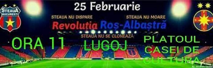 “Să nu lăsăm Steaua să moară! Vă aşteptăm pe toţi steliştii adevăraţi din Lugoj şi din tot judeţul Timiş şi din judeţele alăturate. Cu cât vom fi mai mulţi cu atât ne vom face mai tare auziţi!! O iubire roş-albastră pentru campioana noastră!!”, mai scriu organizatorii pe reţeaua de socializare.