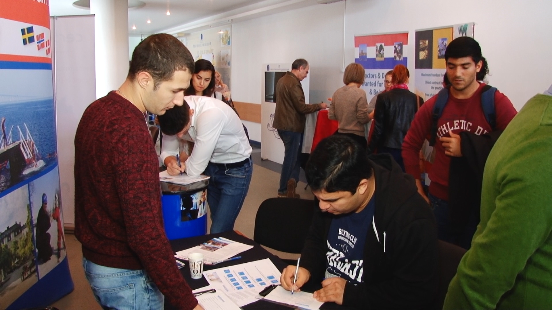 Vorbim despre mai bine de 350 de medici care au trecut azi pragul Centrului Regional de Afaceri din Timișoara, în căutarea unui loc de muncă în Europa. 6 firme de recrutare din domeniul medical au venit cu oferte, în cadrul unei noi ediții a Târgului ”Cariere în Alb”. Ofertele au vizat toate categoriile de profesioniștii din domeniul sănătății: medici de familie, medici specialiști, rezidenți, stomatologi, studenți la medicină din anii terminali, asistenți medicali, fizioterapeuți, moașe.
