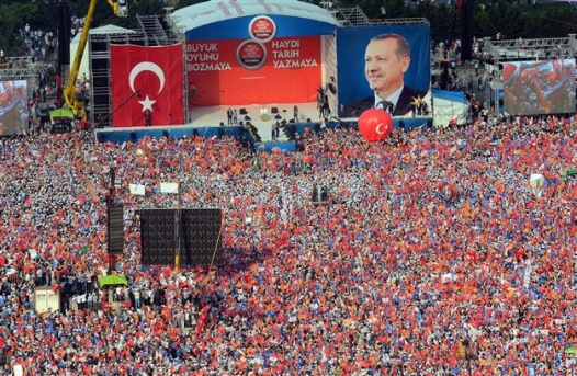 Adunarea „Democraţiei şi Martirilor” de pe terenul de paradă Yenikapi, construit pe mare în sudul peninsulei istorice a Istanbulului, încheie trei săptămâni de demonstraţii nocturne organizate de susţinătorii lui Erdogan.