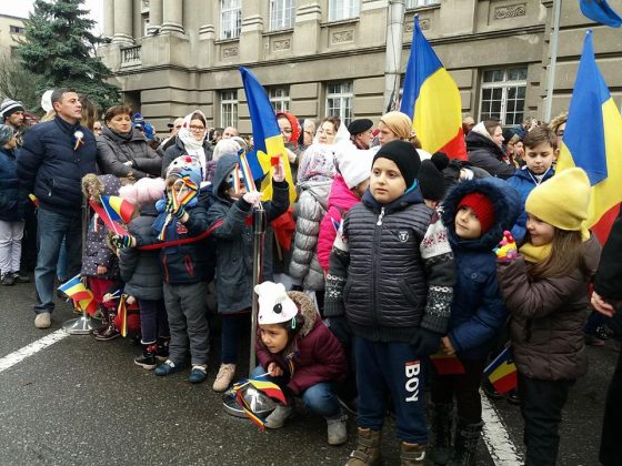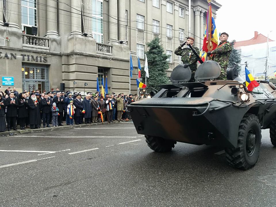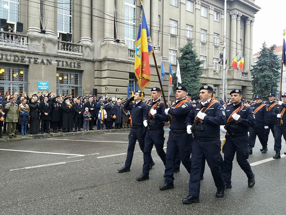 Mii de timişoreni au participat la parada tradiţională de Ziua Naţională, oranizată în faţa Prefecturii Timiş. Oamenii au fluturat steaguri tricolore sau au avut insigne în piept cu culorile naţionale.