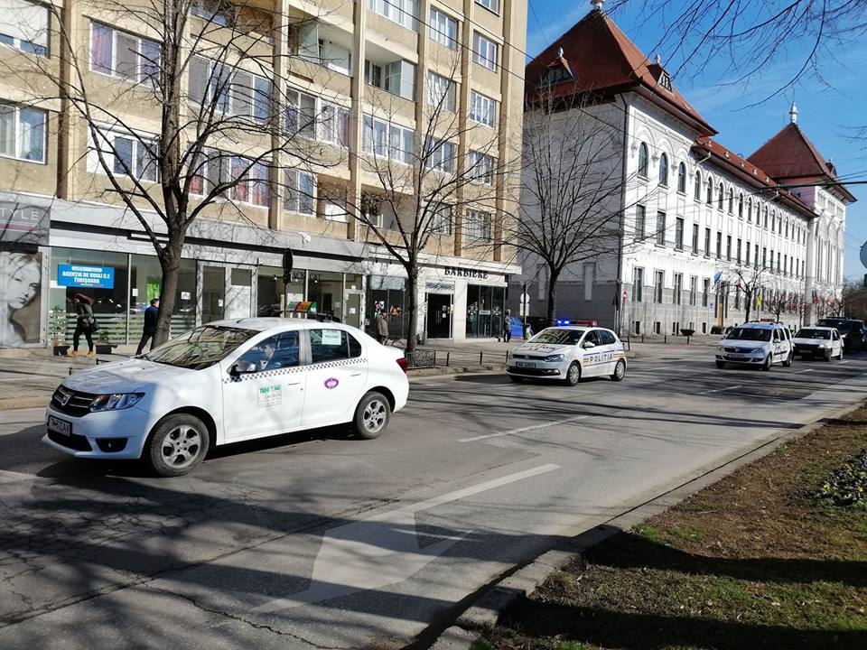 Șoferii și-au lipit pe geamurile taximetrelor afișe cu mesajul ”Stop pirateriei”. Coloana de mașini va ajunge, până la ora 15, atât cât este programat să dureze protestul, în mai multe zone din oraș. Taximetriștii și-au propus să treacă prin Complexul Studențesc, prin zona centrală și să ajungă în Calea Aradului și pe bulevardul Take Ionescu.