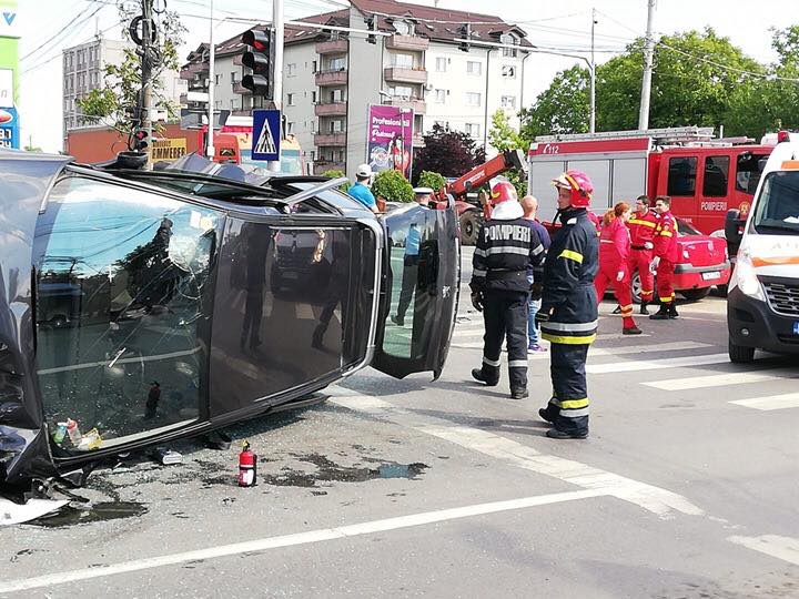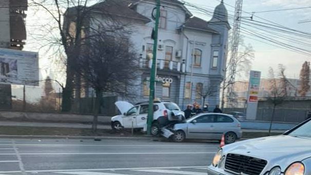 Doi copii și un bărbat răniți într-un accident, la Timișoara. O mașină a trecut pe roșu și a lovit alte 3 autoturisme
