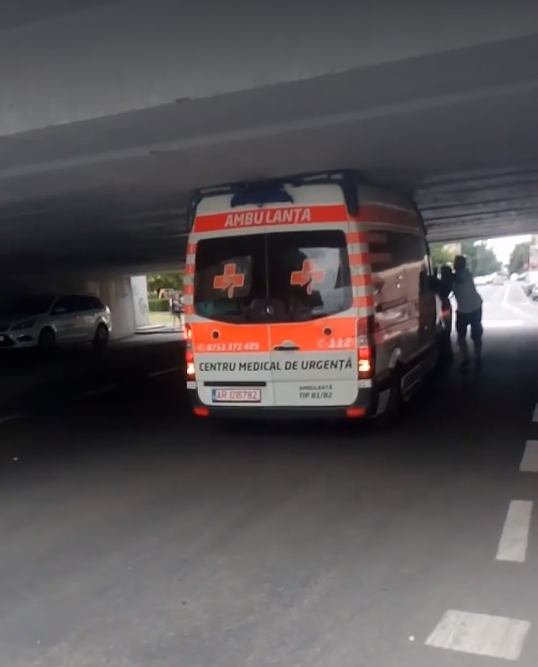 A rămas blocat cu ambulanța sub un pasaj din vestul țării VIDEO