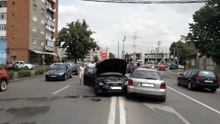 Două autoturisme AUDI s-au ciocnit violent, în vestul țării