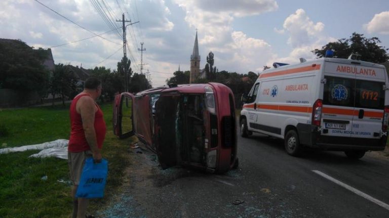 Accident violent pe o sosea din Banat. Doi copii și trei adulți răniți FOTO