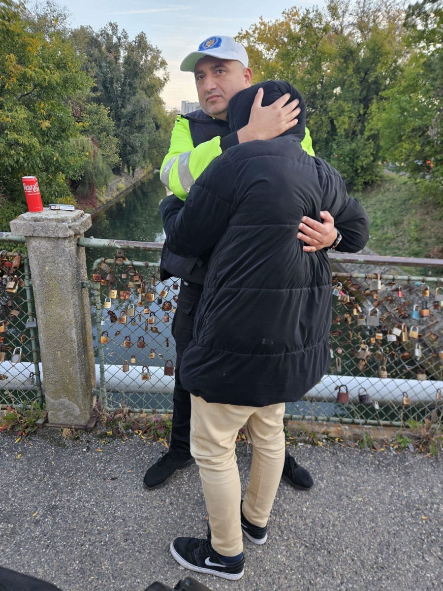 După aproximativ o oră acesta a fost convins că este mai bine să coboare de pe balustrada podului, a fost preluat și adus la sediul Direcției Generale a Poliției Locale Timișoara, unde s-a luat legătura și cu familia.