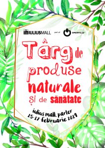 de Produse Naturale şi Sănătate. Peste 20 de expozanți le vor prezenta celor interesați produse care îşi păstrează proprietățile naturale și care sunt beneficiile acestora pentru un stil de viață sănătos. Oferta va include miere, dulciuri de casă, sucuri, gemuri și siropuri, semințe și fructe uscate, ceaiuri și multe alte produse alimentare naturale. Totodată, doritorii vor găsiremedii medicinale, cristale și minerale cu proprietăți terapeutice, cosmetice naturale, articole feng shui, bijuterii antialergene, produse bio şi alte propuneri eco.