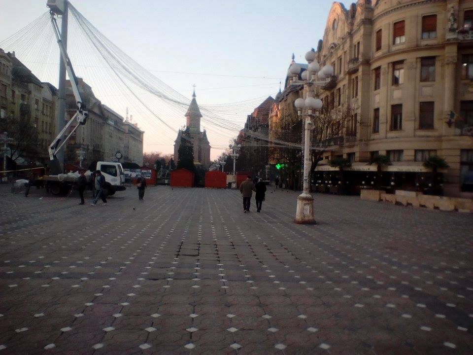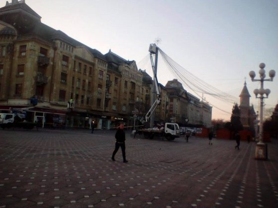 Pregătirile pentru cea de-a X-a ediţie a Târgului de Crăciun din Piaţa Victoriei sunt pe ultima sută de metri. Joi dimineaţă, angajaţii Elba au început montarea cupolei de lumini în faţa Operei naţionale Timişoara.