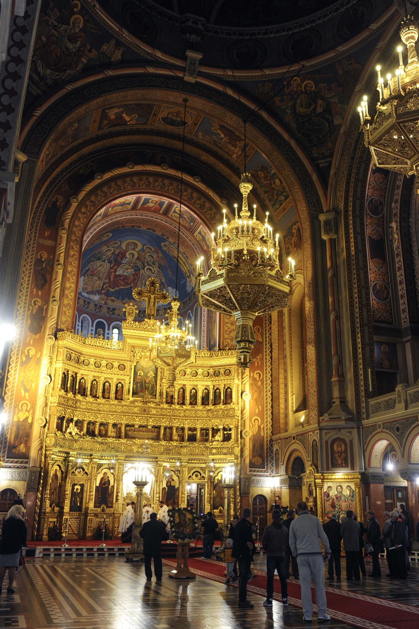 Nu trebuie uitat că portretul regelui se află chiar la intrarea în Catedrală așa cum cer canoanele bisericii noastre ortodoxe. De o parte ctitorul iar de cealaltă parte ierarhul locului. Din 1946 cand au fost pictate portretele regelui Mihai, pe atunci tânăr și al mitropolitului doctor Vasile Lăzărescu nu au fost până în ziua de azi indepărtate nici măcar în perioada comunistă. Au fost acoperite cu doua icoane și nimeni nu s-a gândit să caute ce se află dedesubt. Astfel icoana celor trei ierarhi a acoperit portretul regelui. Iar după căderea în dizgrație și surghiunirea mitropolitului Lăzărescu la Cernica chipul acestuia a fost acoperit cu o icoana a sfinților Mihail și Gavril.