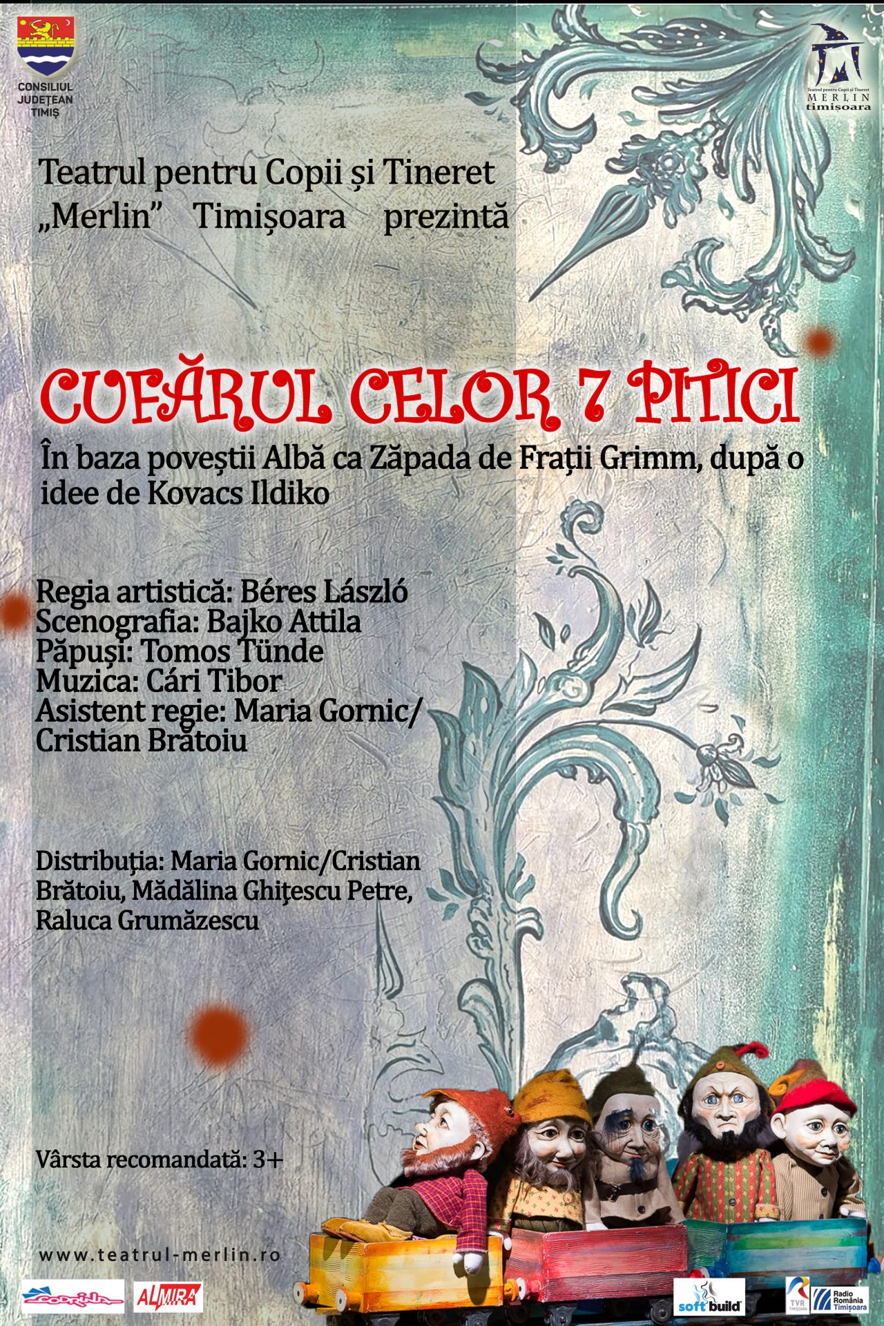 Cufărul celor 7 pitici, în viziunea regizorului Béres László, este un spectacol dedicat păpușarului, fiind o esențializare a acestei arte atât de iubite. Povestea Albei ca zăpada este doar un pretext pentru această întâlnire teatrală dinamică, ludică, care binedispune în aceeași măsură actori și spectatori.