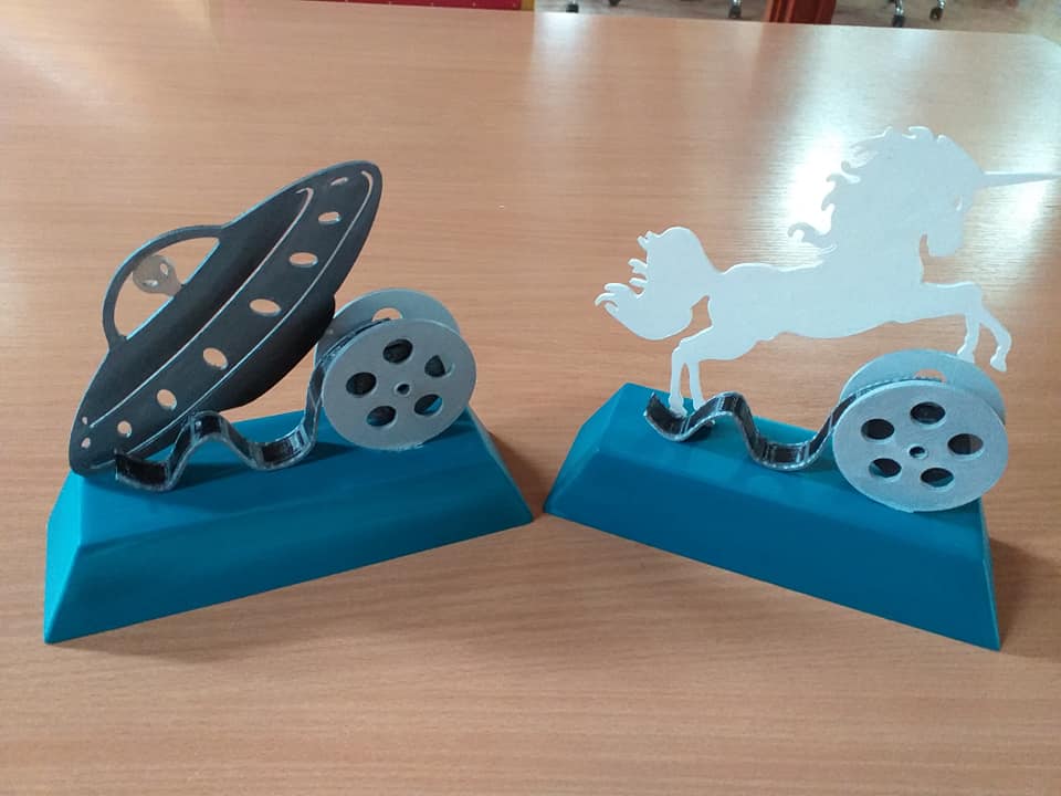 Un prim pas, deloc de neglijat, a fost cel de a avea un trofeu de înmânat câștigătorilor. Apelul făcut artiștilor talentați a prins contur. Tânăra studentă a facultății de arte Deiana David și-a adjudecat ambele premii pentru designul trofeelor. Acestea sunt deja materializate și arată excepțional.
