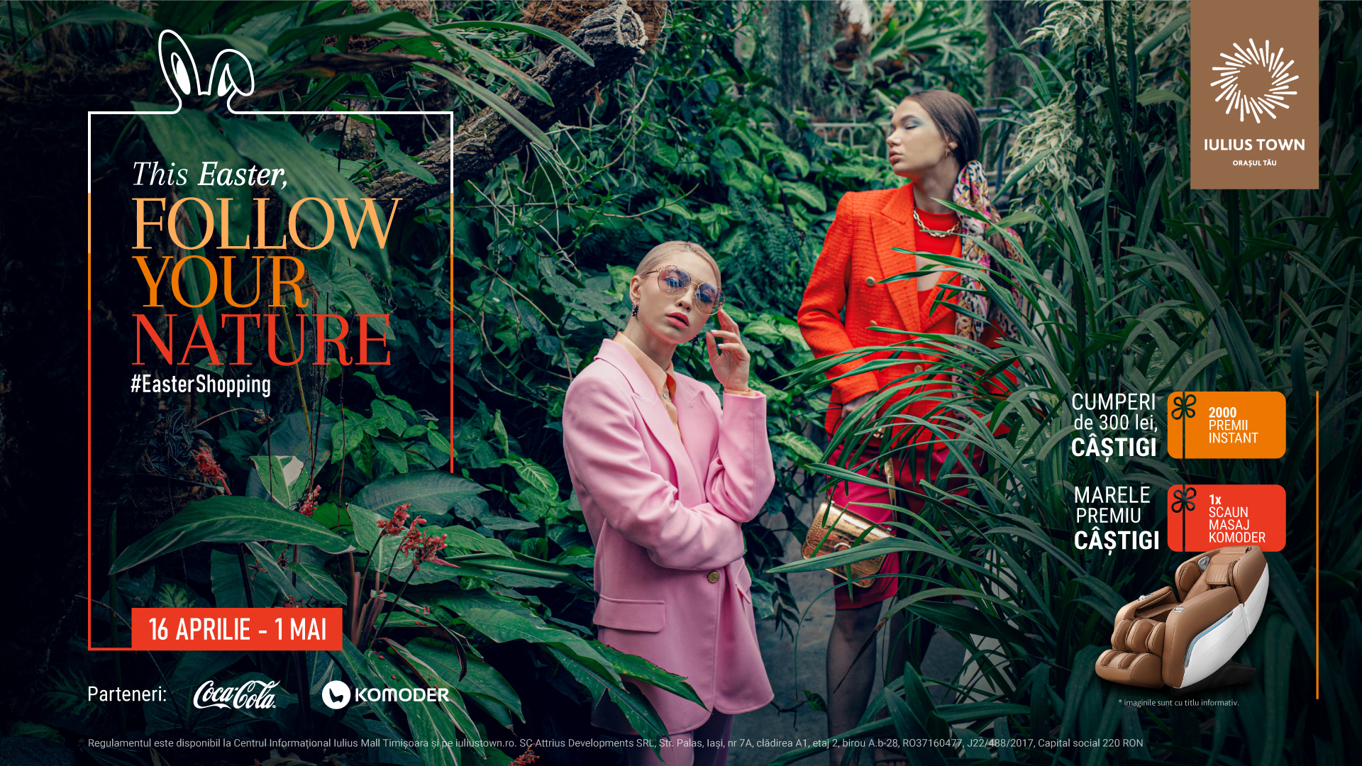 Primăvara aceasta reinventează-ți garderoba cu piese fresh pline de culoare! Aceasta este recomandarea stiliștilor, iar noile colecții din Iulius Town sunt inspirate din natură și propun piese în culori neutre sau vibrante și pattern-uri impresionante, ce te vor ajuta să-ți păstrezi Your Natural Beauty. Iar dacă ai început deja pregătirile pentru Paște și urmezi tradiția de a te înnoi cu ocazia acestei mari sărbători, Iulius Town îți oferă șansa să câștigi un fotoliu de masaj Komoder și vouchere pentru cumpărături. Valoarea totală a premiilor este de 20.000 de euro.