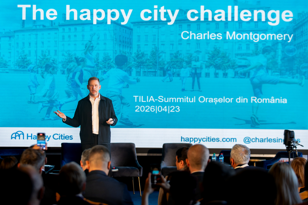 Invitatul special al summitului, Charles Montgomery, autorul cărții Orașul Fericit și unul dintre cei mai influenți urbaniști la nivel internațional, a vorbit despre legătura directă dintre designul urban, încrederea socială și bunăstarea oamenilor. În prezentarea sa, intitulată „Ştiinţa oraşelor fericite şi bunăstarea oamenilor”, Charles Montgomery a arătat că „designul urban dictează comportamentul, iar oraşele pe care le construim astăzi ne pot apropia sau, dimpotrivă, ne pot izola”, iar „atunci când punem maşinile în centrul oraşului, pierdem spaţiu, libertate şi, în cele din urmă, fericire”. Urbanistul a dat drept exemple transformarea Times Square din New York, îndepărtarea maşinilor din jurul şcolilor din Paris şi ideea cartierelor fără parcări, ca modele prin care tehnologia şi mobilitatea alternativă pot recupera spaţiul urban pentru oameni.