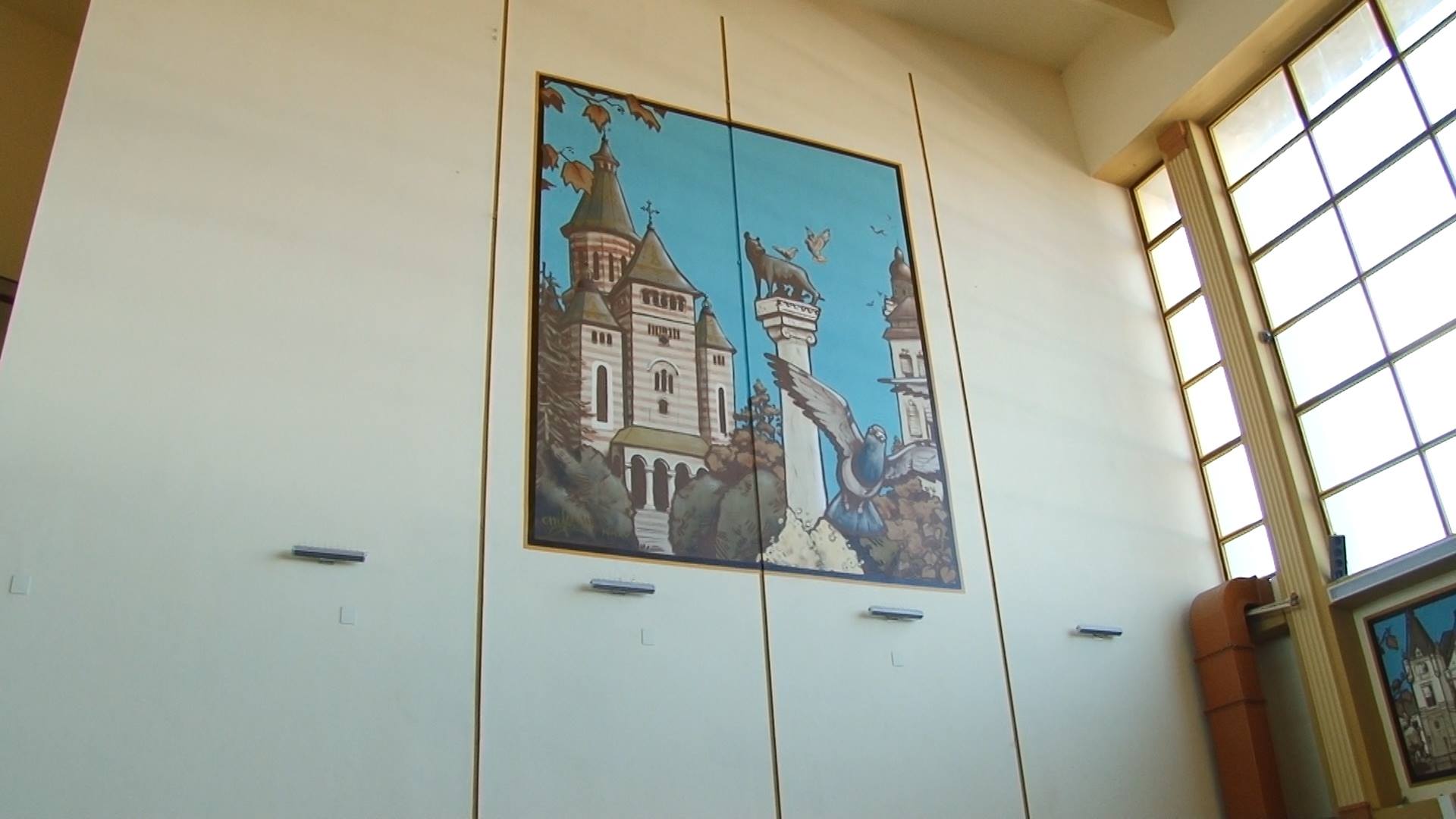 Catedrala e destul de canonic ridicată pe zidul din stânga, așa că nu mai poposesc pe noile-i (iată, inclusiv feroviare!) trepte, ci încerc să privesc prin vitrina frontală (peretele dinspre peron) alegoria artistului, care nu întâmplător m-a dus cu gândul la Librăria „Eminescu” (azi, jumătate bancă), din simplul motiv că pare un album deschis, plătit de CJT unei edituri de vizavi, să zicem. Și văd un arc peste timp, un cerc deschis ca un șarpe pe un frontispiciu despicat de vremuri al unei farmacii din Fabric.