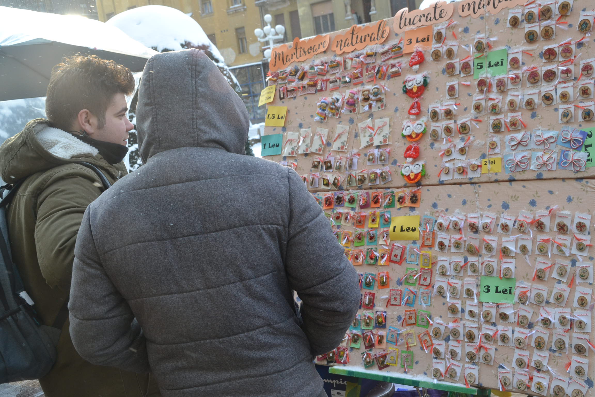 Marțișorul este, după un clișeu tocit, un gingaș vestitor al primăverii. Așa să fie? Anul acesta nu prea vestește decât cele zece sau opt grade sub zero, ori chiar 18. Bieții vânzători de iluzii de primăvară stau mofluzi în omăt cu nasul roșu de frig și tropăie mărunt. Când mai vând câte ceva e mare eveniment.