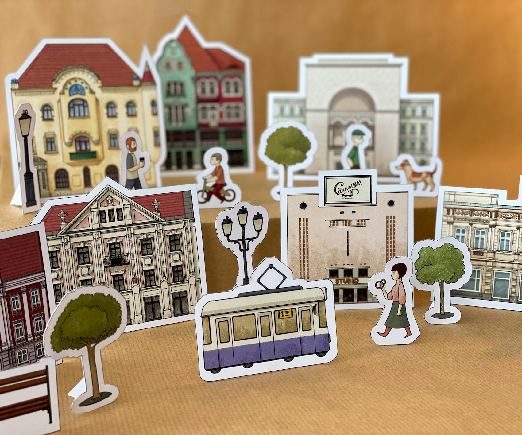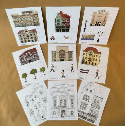 „Planșele din acest joc se decupează pe un contur simplu, cu margine albă, lăsând loc exercițiului de tăiere fără ca acesta să afecteze imaginile. Operațiunile de pliere și lipire sunt mult simplificate, iar planșele includ pe lângă clădiri și o serie de personaje și elemente auxiliare (copaci, felinare, tramvai), specifice Timișoarei, minimizând efortul și maximizând joaca.”