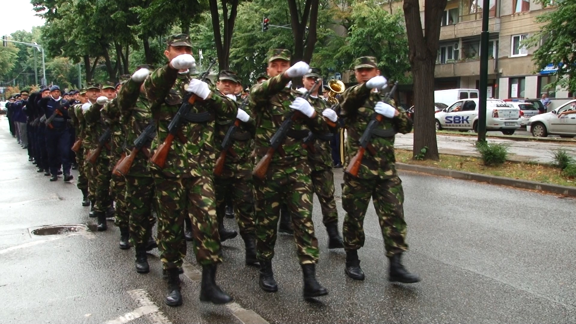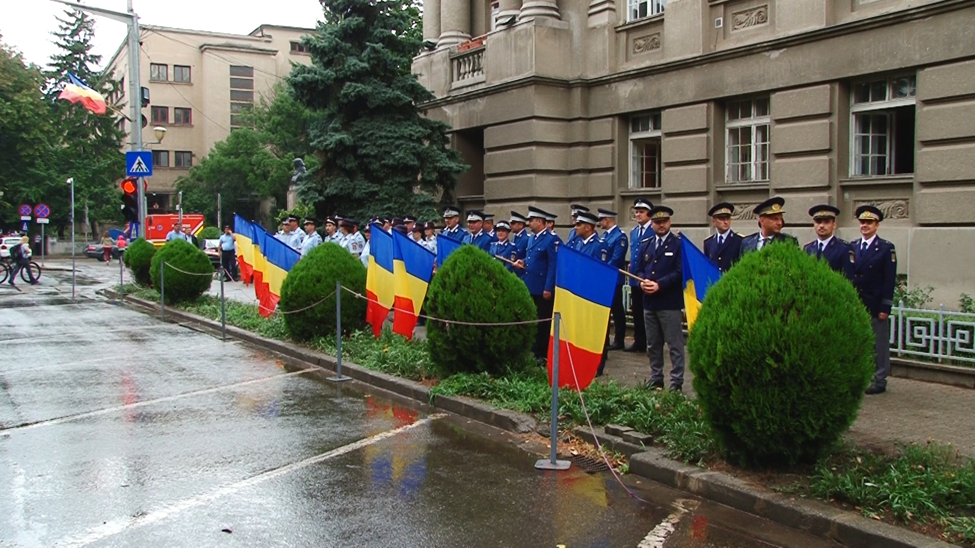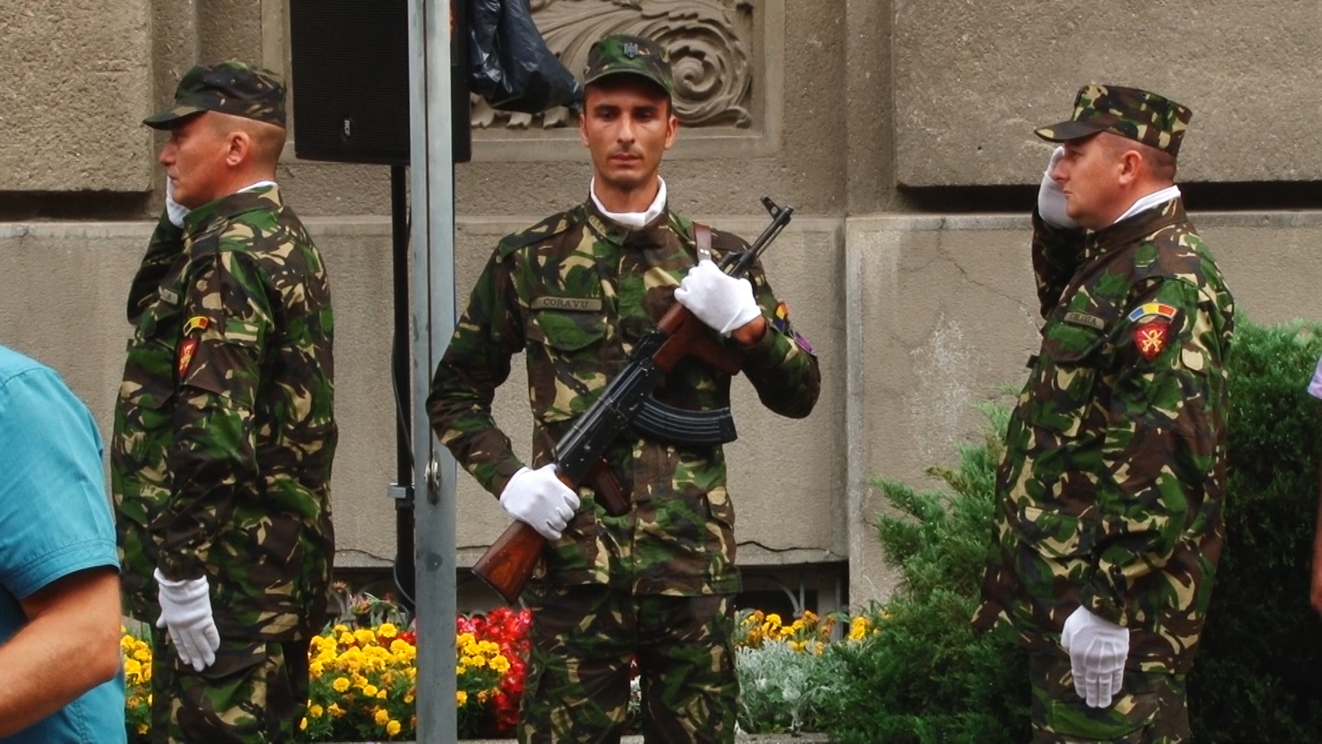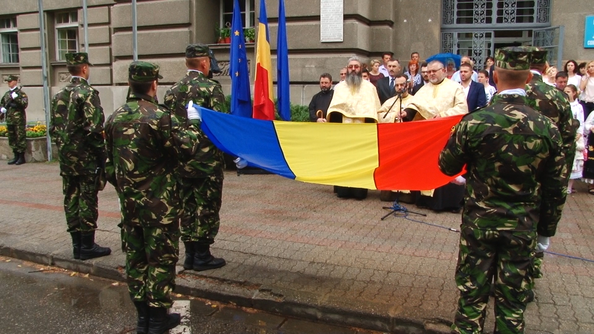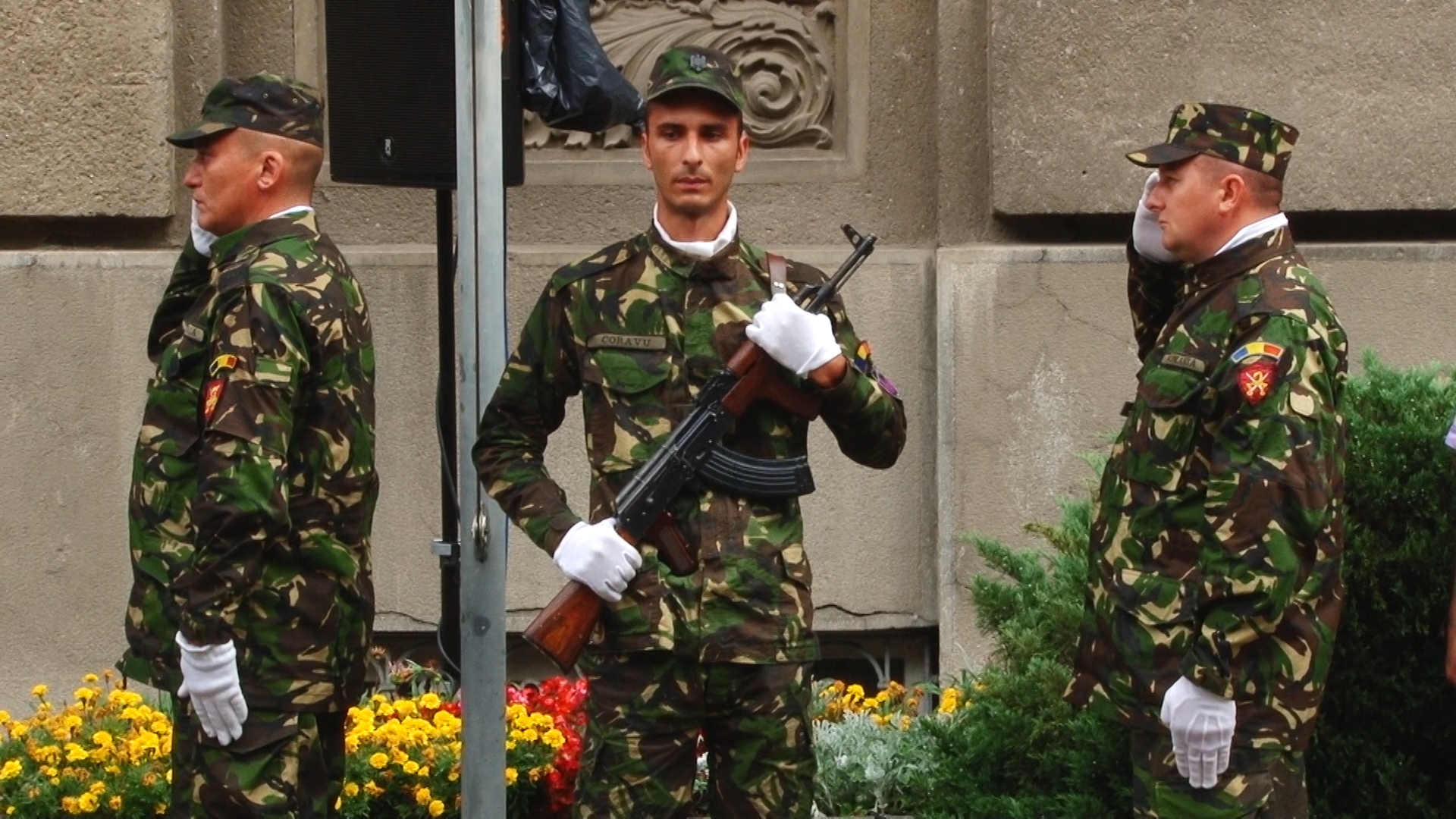 Ploaia a căzut necontenit in dimineața de luni, însă spre finalul evenimentului, o rază de soare şi-a făcut apariţia, odată cu retragerea gărzii şi a fanfarei militare.
