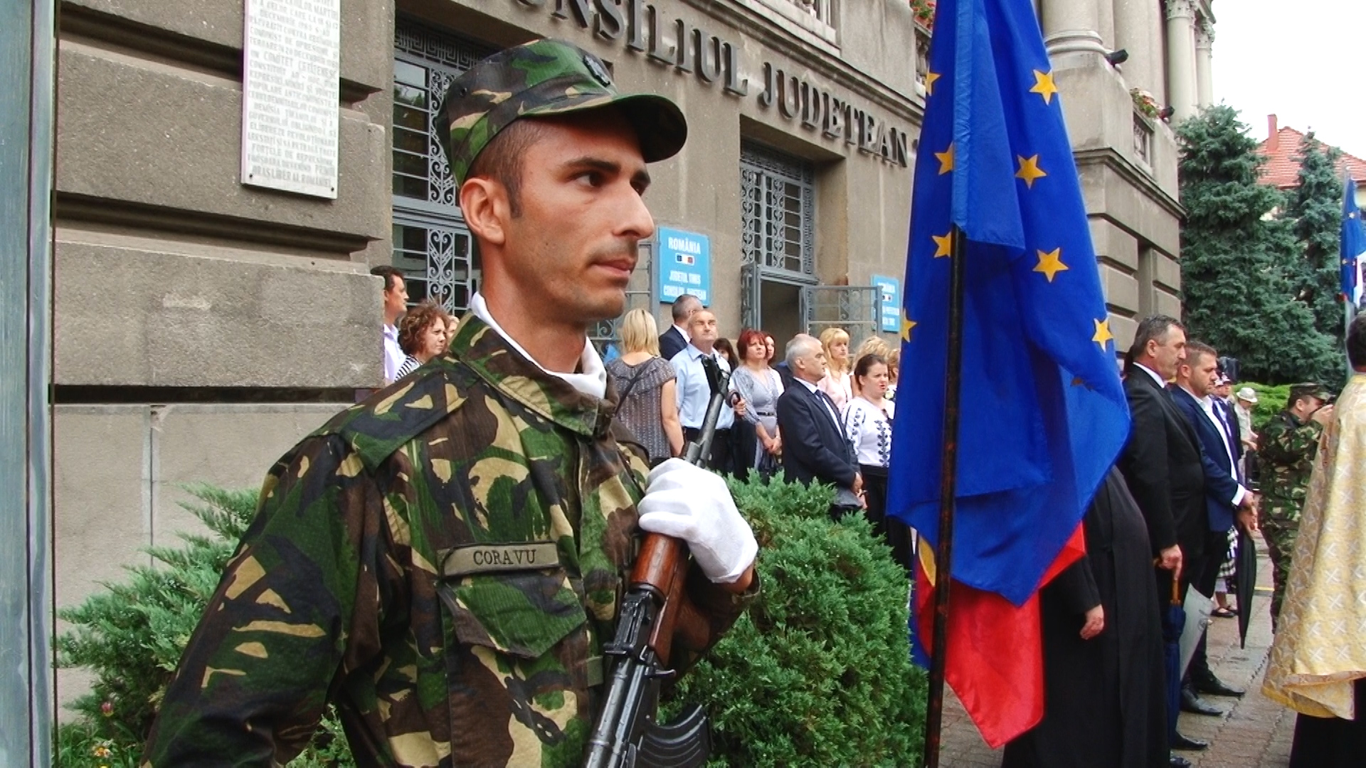 ,,Astăzi sărbătorim Ziua Drapelului Naţional. L-aş cita pe Mitropolitul Banatului, care asemăna drapelul cu o icoană, o icoană la care trebuie să ne închinăm chiar dacă suntem în ţară sau străinătate, să-l privim cu respect, este un simbol al statului român care a fost apărat cu multă dârjenie, cu mult sacrificiu de-a lungul timpului.”, a declarat subprefectul Franțescu.