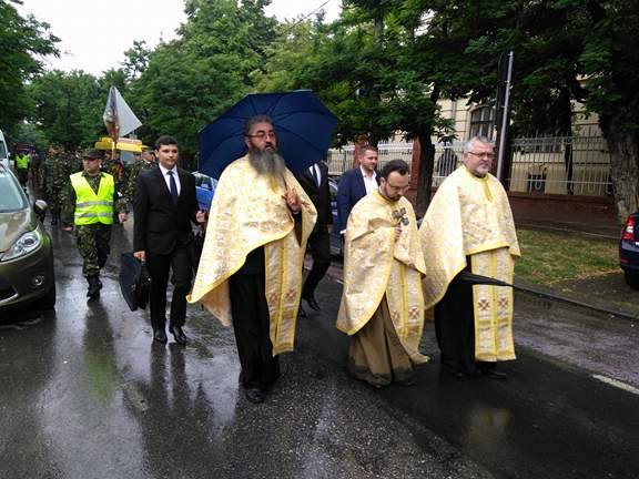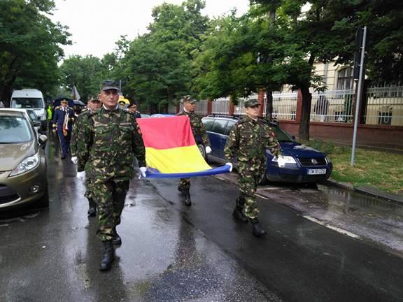 Garda de onoare, formată din jandarmi ISU şi militari ai Garnizoanei Timişoara, a fost de asemenea prezentă la eveniment, sub directa comandă a colonelului Cristian Dinulică. Acesta a declarat: ,,Pentru toţi românii Ziua Drapelului reprezintă o zi deosebită, cu atât mai mult pentru noi, pentru militari, drapelul reprezintă simbolul onoarei şi al demnităţii naţionale, reprezintă România. Este o icoană, aşa după cum spunea şi Mitropolitul Banatului pe care noi o respectăm cu sfinţenie, iar transpunerea drapelului naţional în drapelul de luptă al fiecărei unităţi este o mândrie şi o onoare pentru noi , pentru militari şi îl apărăm cu preţul vieţii noastre de fiecare dată”.
