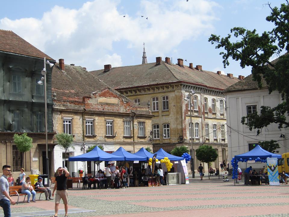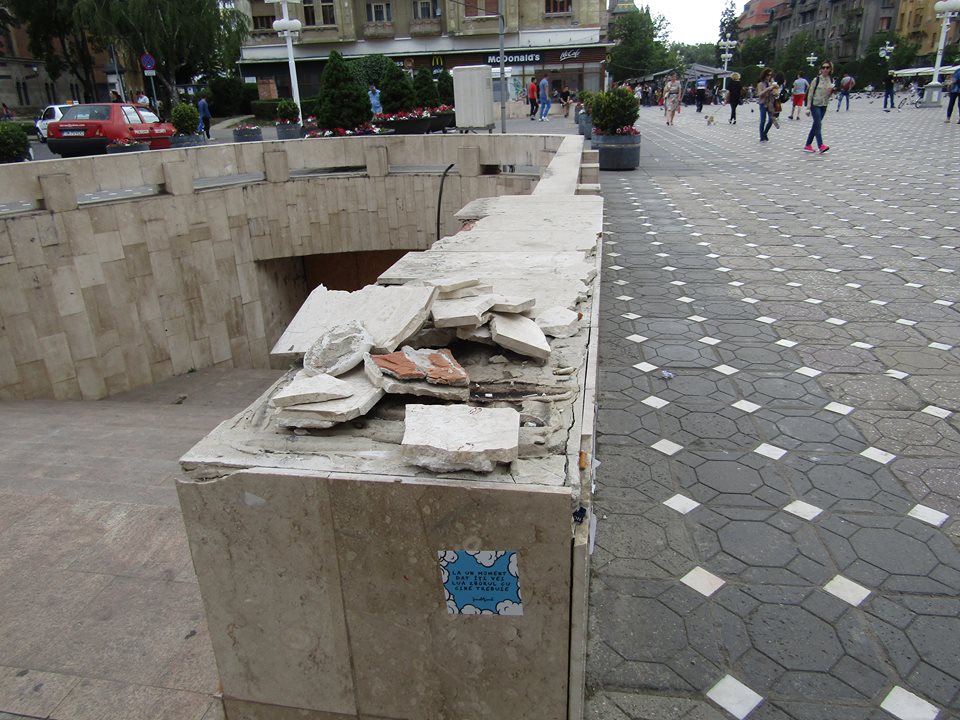 Un centru cu clădiri gri şi mohorâte, care oferă doar tristeţe, cu toate că doar partea dintre aleile pietonale arată veselie, ce e plin de flori, singurul loc ce îi dă dreptul ca Timişoara să fie numită pe drept „Oraşul Florilor”. Mai există şi nişte parcuri, în rest oferim doar tristeţea tencuielilor căzute.