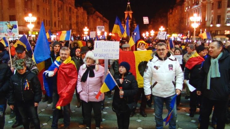 Update 20:20: Aproximativ 200 de timișoreni sunt în fața Operei Naționale Timișoara. Protestatarii cer referendum și scandează „Rezistăm!”
