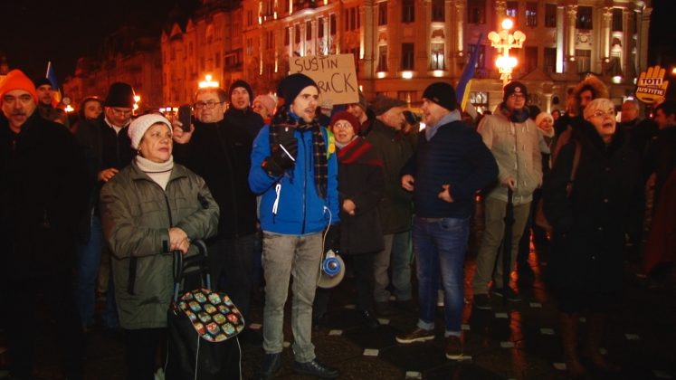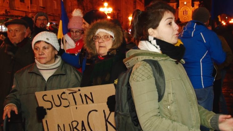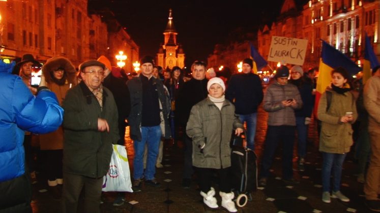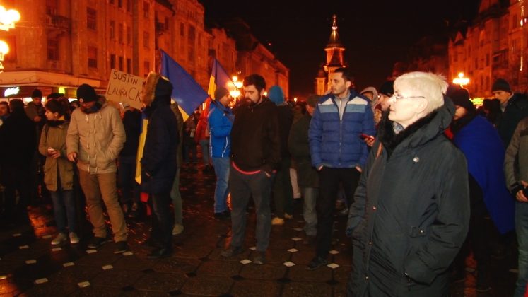 Protest în Piața Victoriei din Timișoara. Oamenii au ieșit pe stradă imediat ce au auzit anunțul făcut de ministrul Justiției, Tudorel Toader, prin care acesta va cere demiterea șefei DNA, Laura Codruț Kovesi.