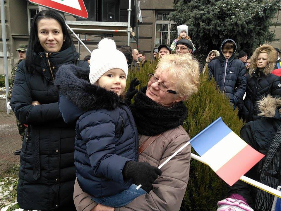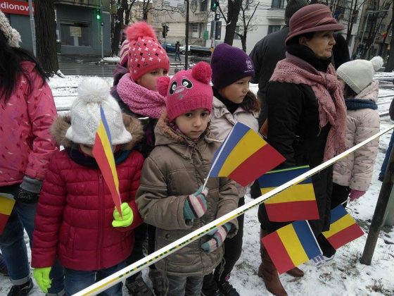 Sute de persoane, de toate vârstele, îndură frigul cu zâmbetul pe buze și pe ritmurile fanfarei militare în așteptatea celui mai important moment: defilarea forțelor de ordine.