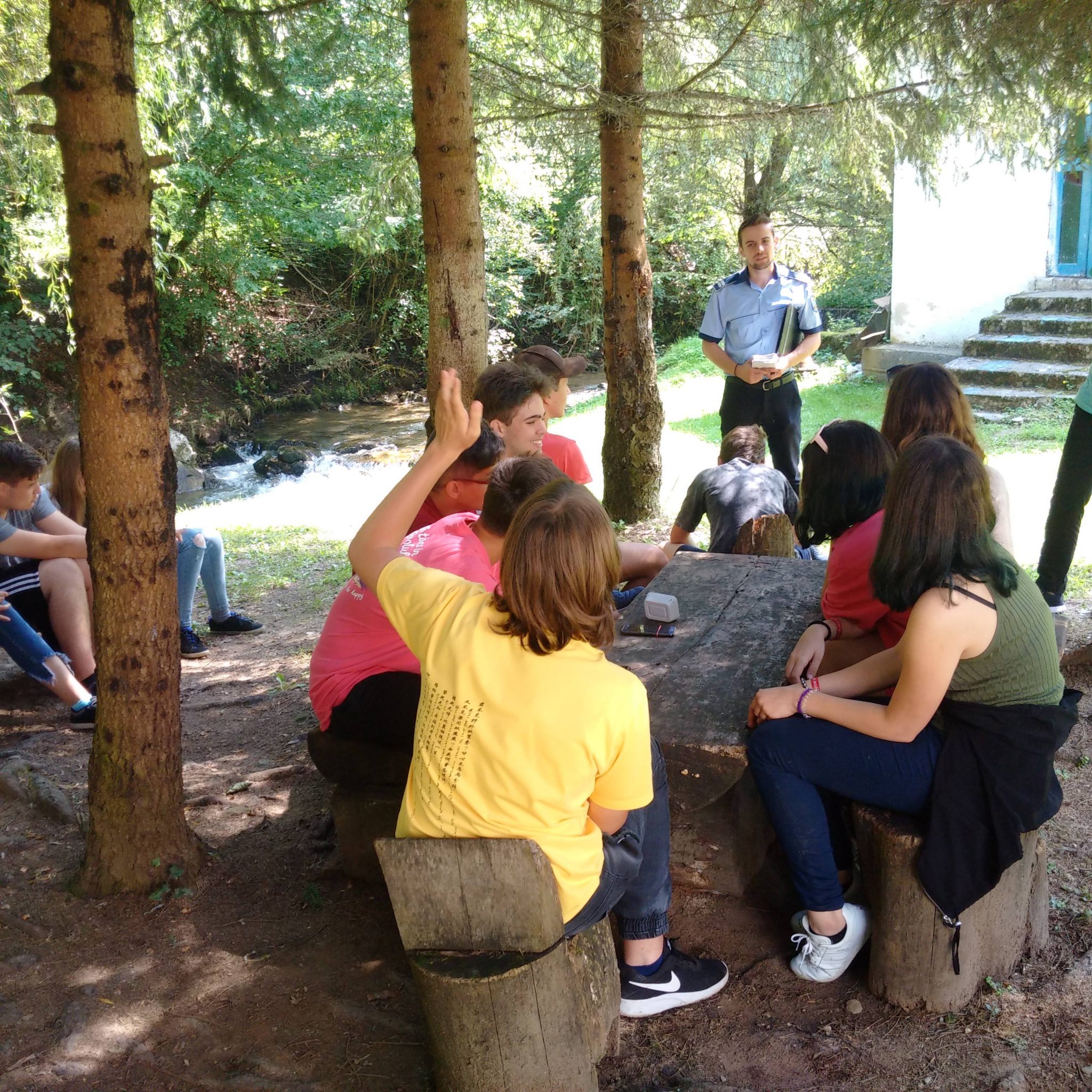 Oameniii legii au ieșit pe teren și stau de vorbă cu tinerii. Le dau sfaturi despre cum să se ferească de hoți și îi informează despre faptul că drogurile și alcoolul pot să le strice vacanța.