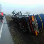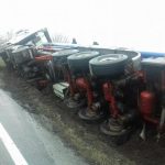 Şoferul unui TIR a scăpat ca prin urechile acului după ce s-a răsturnat cu automarfarul. Ziua femeii se pare că i-a purtat noroc. Camionul cisterană s-a răsturnat într-un şanţ de pe marginea Drumului Naţional 7.