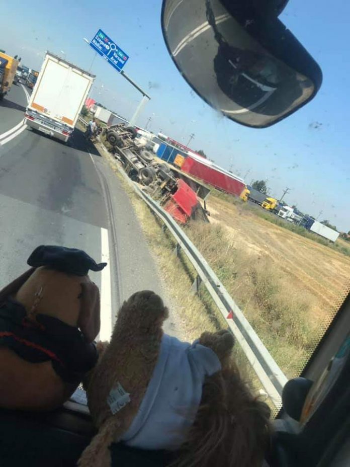 Șoferul unui TIR a fost victima unui accident care s-a petrecut în urmă cu doar câteva minute, în jurul orei 15:15. Se pare că, pe breteaua de legătură dintre A1 și DN7 spre Zona Industrială Arad, acesta s-a răsturnat.