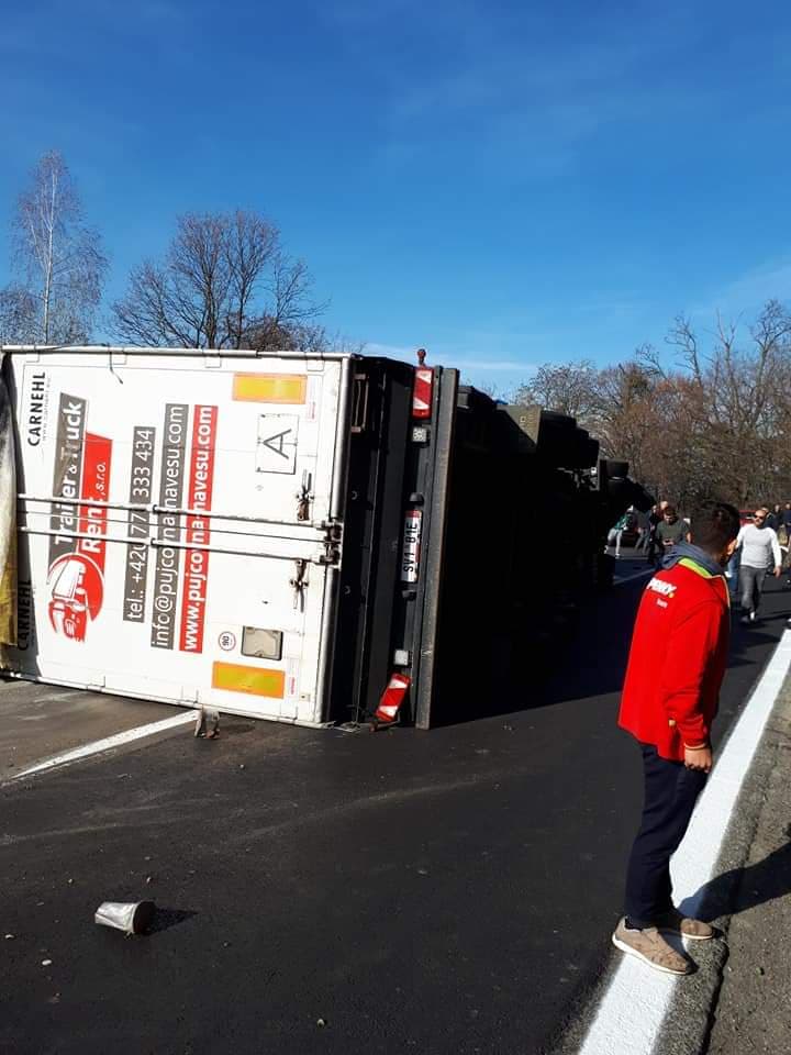 Accidentul s-a petrecut în urmă cu puțin timp, iar camionul a căzut de-a curmezișul, ocupând ambele benzi de circulație. Până la degajarea lui, traficul este blocat.
