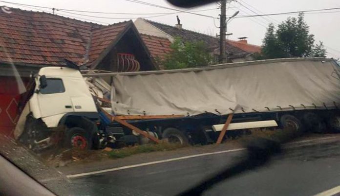 Un tir încărcat cu pietriş s-a răsturnat în această seară pe DJ 203 K, pe raza localităţii Săpoca, vehiculul fiind condus de un şofer cu o concentraţie alcoolică de 1,44 mg/l alcool pur în aerul expirat.