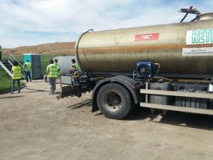 b. Daca acest standard nu este îndeplinit – permeatul este preluat cu motopompe şi încărcat în autocisterne. Acestea aduc permeatul neconform la staţia de epurare Aquatim din Timişoara unde este neutralizat