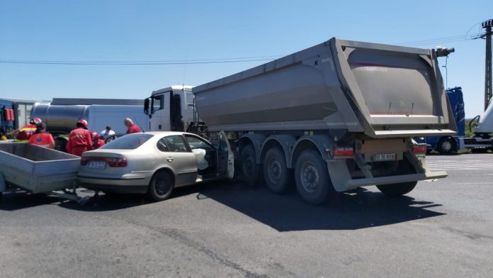 ”În accident au fost implicate un camion, în care se afla șoferul, și un autoturism în care se aflau 2 persoane. În urma impactului, o persoană din autoturism a suferit leziuni ușoare și primește îngrijiri la fața locului de la paramedicii de pe echipajul SMURD”, a transmis ISU Banat.